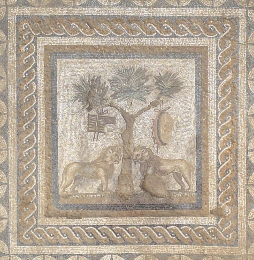Tiyatronun üst kısmında bulunan alanda çalışan kazı ekibi, portikoya (üstü örtülü, önü sütunlu açık galeri) bağlı bir yapı içerisinde aslanlı mozaiğe rastladı.