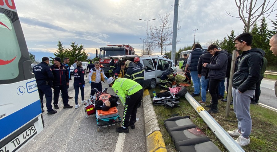 Edinilen bilgiye göre, direksiyon başında fenalaşan Turgay Mert'in (42) kontrolünden çıkan 54 ABJ 852 plakalı hafifi ticari araç, önce aydınlatma sonra Elektronik Denetleme Sistemi (EDS) direğine çarptı. Çarpmanın şiddetiyle motor araçtan dışarıya fırladı. Sürücü Turgay Mert, eşi A.M. (48) ve oğlu O.M. (16) araçta sıkıştı. Kazayı gören diğer sürücüler yardıma koşarken 112 Acil Çağrı Merkezine ihbarda bulundu. İhbar üzerine adrese itfaiye, sağlık ve polis ekipleri sevk edildi.