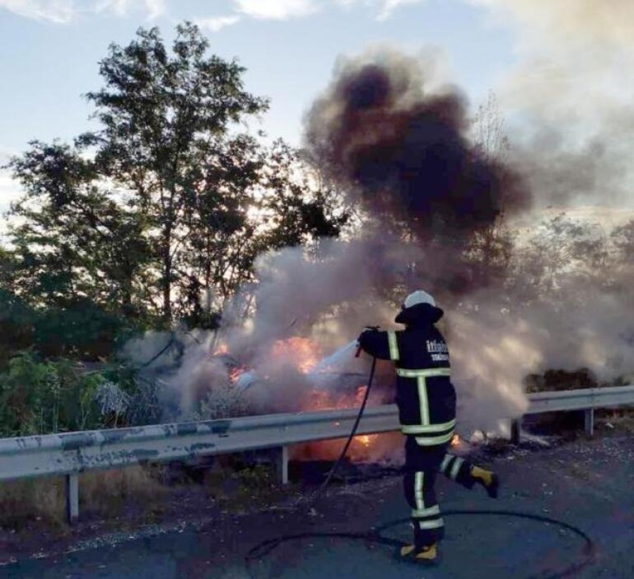 Tekirdağ'ın Ergene ilçesi TEM Otoyolu'nda direksiyon hakimiyetini kaybederek bariyere çarpan otomobil alevlere teslim oldu. Kazada sürücü Yusuf Çelik (39), yaşamını yitirdi.