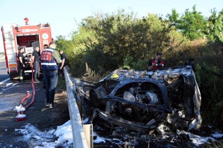 İstanbul'dan Edirne yönüne giden Yusuf Çelik'in kullandığı 34 DYS 431 plakalı otomobil, sürücüsünün direksiyon hakimiyetini kaybetmesiyle bariyere çarptı. Takla atıp ters dönen otomobil alev alarak yanmaya başladı.