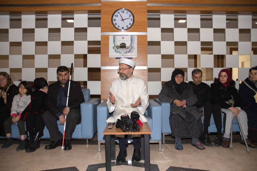 Diyanet İşleri Başkanı Ali Erbaş, Diyanet İşleri Başkanlığı Rıfat Börekçi Eğitim Merkezi'nde kalan depremzede aileleri ziyaret etti.