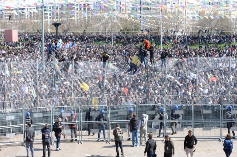 Halkların Demokratik Partisi (HDP) öncülüğünde Bağlar ilçesinde gerçekleştirilen nevruz etkinliği sabah saatlerinde başladı. 5 kilometrelik alanda 3 aşamalı bariyer ve güvenlik kapısı kuruldu. 136 bin metrekarelik alanda 7 bin polis görev alırken, birçok noktada bomba imha uzmanı ve eğitimli bomba arama köpekleriyle aramalar yapıldı.