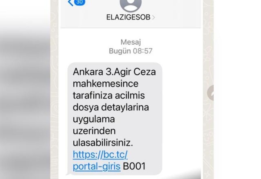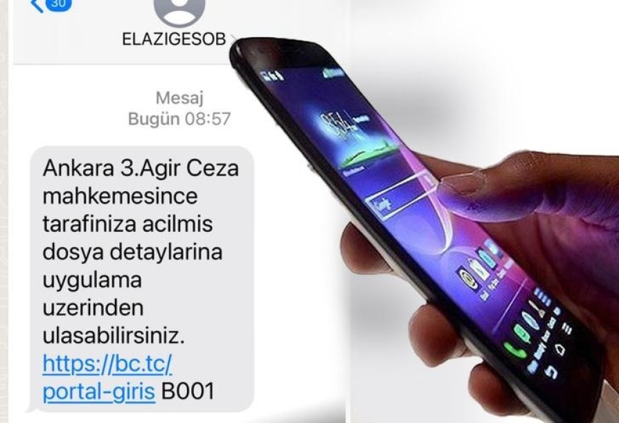 OdaTV'nin haberine göre kısa mesaj aracılığıyla dolandırıcılık yöntemini sürdüren sahtekarlar 'Elazıgesob' adı ile gönderdikleri mesajlarda "Ankara 3. Ağır Ceza mahkemesince tarafınıza açılmış dosya detaylarına uygulama üzerinden ulaşabilirsiniz" ifadelerini kullanıyor.