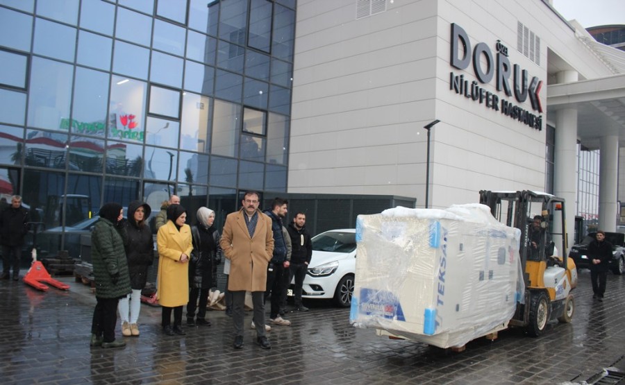 Doruk Nilüfer Hastanesi'nde toplanarak AFAD ve Kızılay ile koordineli bir şekilde Hatay Sahra Hastanesi'ne gönderilen sağlık malzemeleri arasında, serumlar, sarf malzemeleri ve çocuk bezleri ile değişik hastalıkların tedavisinde kullanılan ilaçların yanı sıra Hatay Sahra Hastanesi'nin elektrik ihtiyacını karşılayacak 57 kVA'lık bir jeneratör bulunuyor.