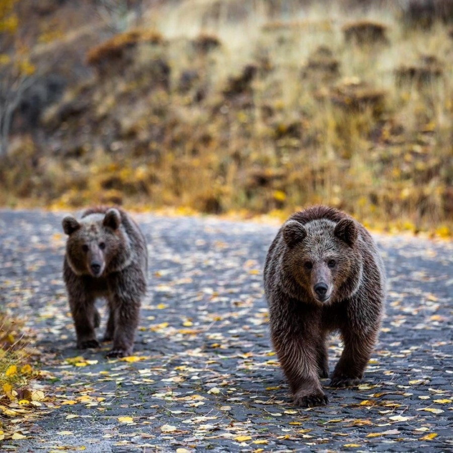 Ağaçların oluşturduğu renk cümbüşüyle fotoğraf çektiren Öznur ve Yüksel çifti, çekimlerini tamamlamaya yakın Nemrut'ta yaşayan 4 ayı yanlarına geldi.