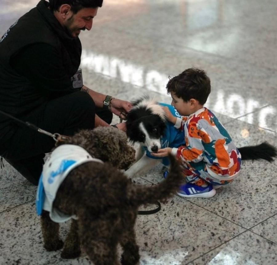 İstanbul Havalimanı, kaygılı yolcular için 5 terapi köpeği işe aldı. Bu sevimli ekip, Liza, Alita, Kuki, Hektor ve Moka'dan oluşuyor ve hepsinin yaka kartları bulunuyor. Görevlerine Mart ayının başından bu yana devam eden köpekler, dünyanın en yoğun ulaşım merkezlerinden biri olan İstanbul Havalimanı'nın koridorlarında özveriyle dolaşıyorlar ve endişeli yolculara stresten uzak bir seyahat deneyimi sağlamayı amaçlıyorlar.