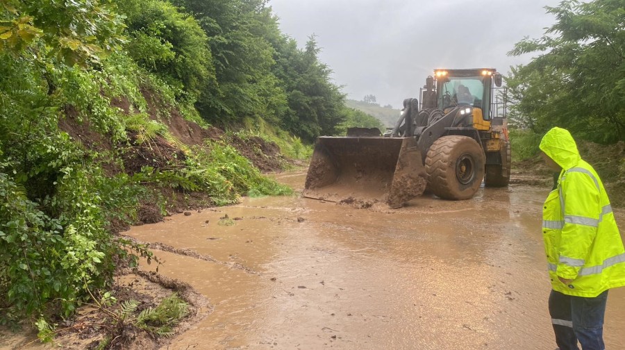 Düzce merkez ile Yığılca ilçesini birbirine bağlayan yolda şiddetli yağış sonrası oluşan heyelan yolu trafiğe kapattı.