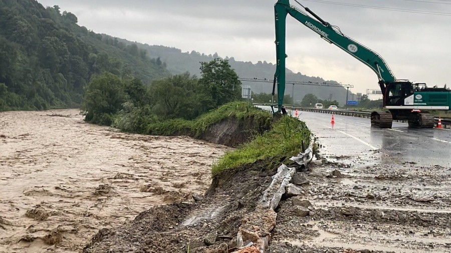 Karayolları ve Devlet Su İşleri ekipleri, kara yolunun çökme tehlikesine karşı yolun Ankara istikametini ulaşıma geçici olarak kapattı.