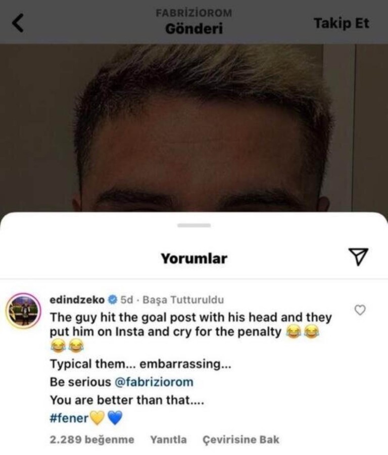 Dzeko yaptığı paylaşımda, "Adam kafasını direğe vurdu ve onu Instagram'a koyup penaltı için ağladılar.
