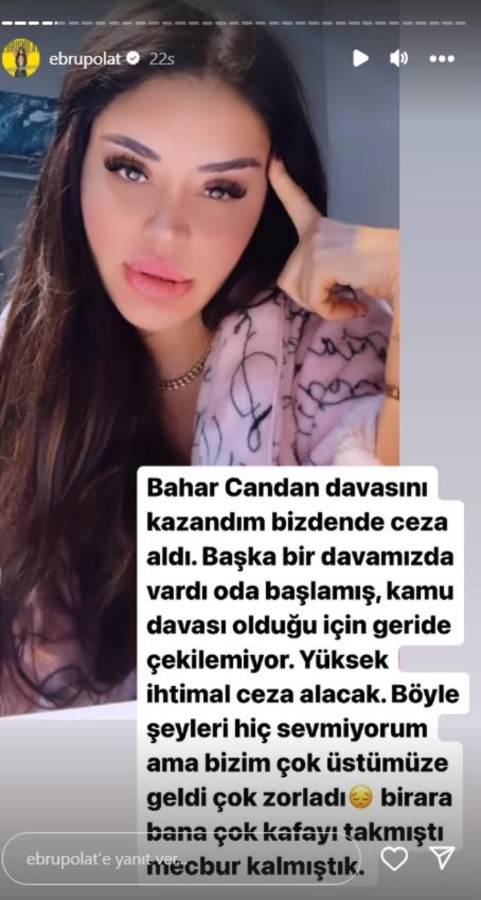 "Bahar Candan davasını kazandım bizden de ceza aldı" diyen Polat "Böyle şeyleri hiç sevmiyorum ama bizim çok üstümüze geldi çok zorladı" dedi.
