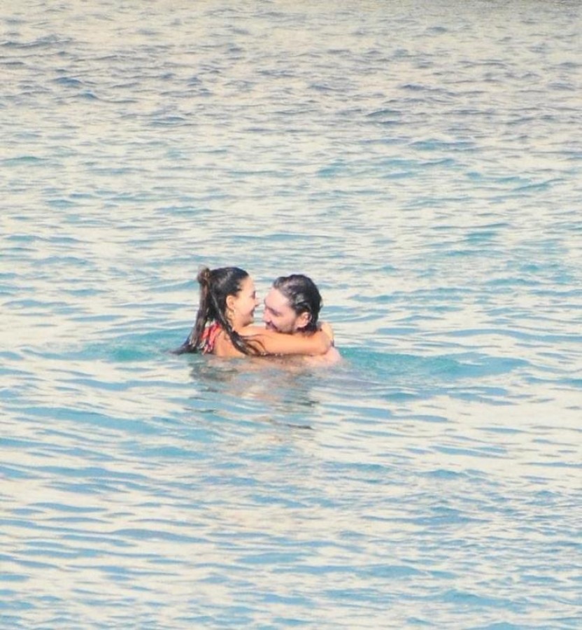 Çift tanıştıkları ve düğün yaptıkları Alaçatı'daki lüks beach'te tatil yapmak ve dinlenmek için geri döndü. Burada denize girdiler ve anılarını tazelediler.