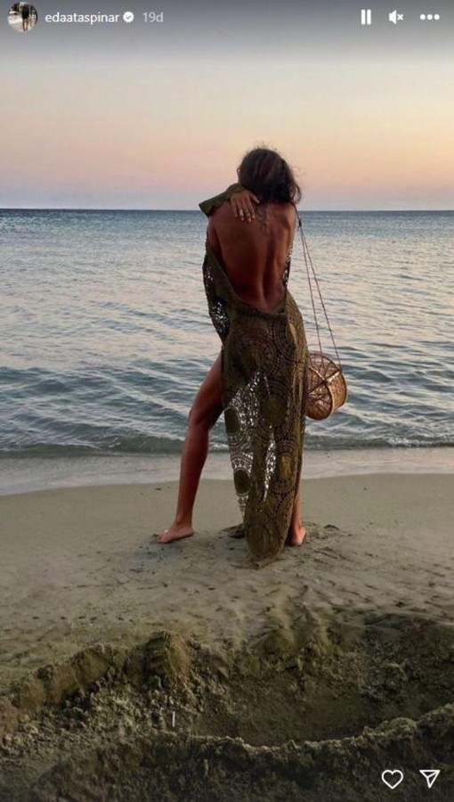 Sıcak havanın tadını Ibiza'da çıkaran Eda Taşpınar, üstsüz bir şekilde kumsalda güneş banyosu yaptığı anları sosyal medya sayfasından takipçileriyle paylaşmıştı.
