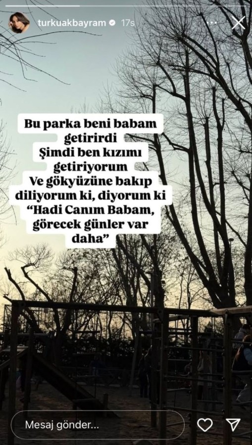"Babam, beni bu parka getirirdi. Şimdi ben kızımı getiriyorum. Ve gökyüzüne bakıp diliyorum ki, diyorum ki; 'Haydi canım babam, görecek günler var daha."