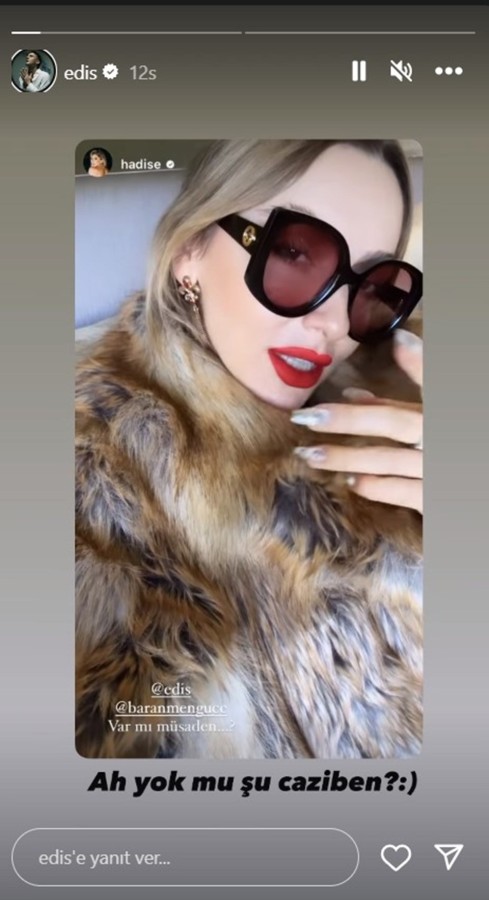 Hadise, Edis ile Baran Mengüç'ün yeni şarkısını dinlediği anları paylaştı. Edis, Hadise'nin sosyal medya paylaşımına esprili bir yanıt verdi.