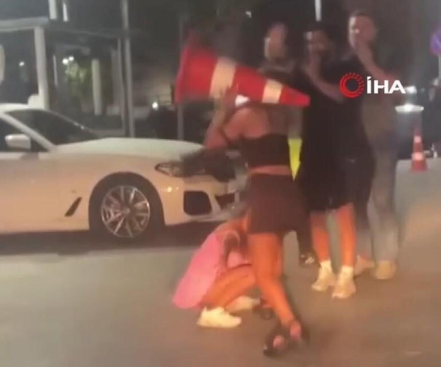 İddiaya göre bir eğlence mekanının çıkışında bilinmeyen bir nedenle mekan çalışanları ile yabancı uyruklu iki kadın arasında kavga çıktı.