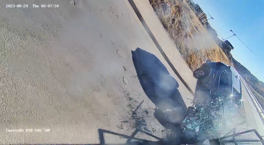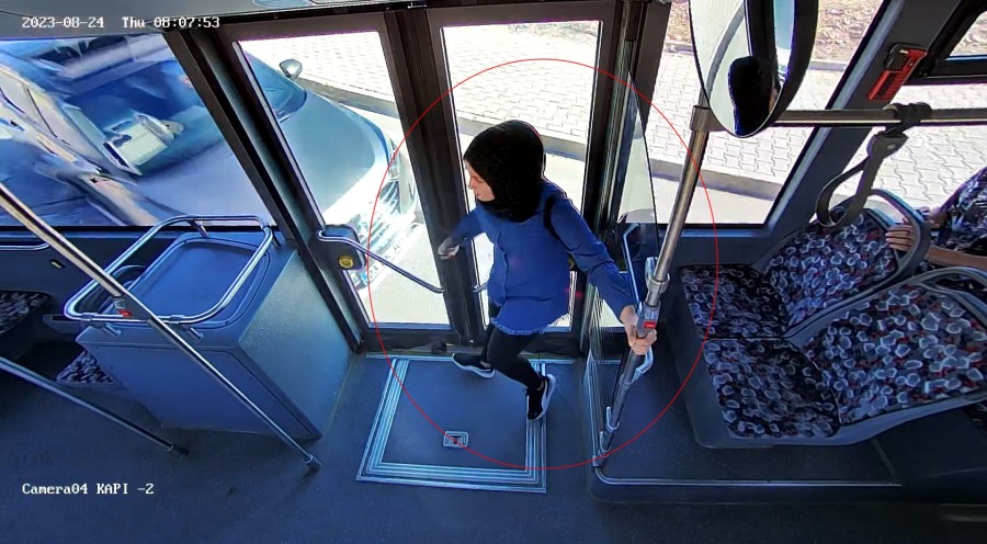 Bu arada kaza, otobüsün araç içi kamerasına yansıdı. Görüntülerde, durağa koşarak gelen kadın yolcunun bindiği otobüsün orta kapısına, kavşakta cipin çarpması, kadının savrulması, sürücünün otobüsü durdurarak, yolcuların acilen inmesini istemesi, kadının ayağının kırıldığını ve hareket edemediğini söylediği anlar yer aldı.