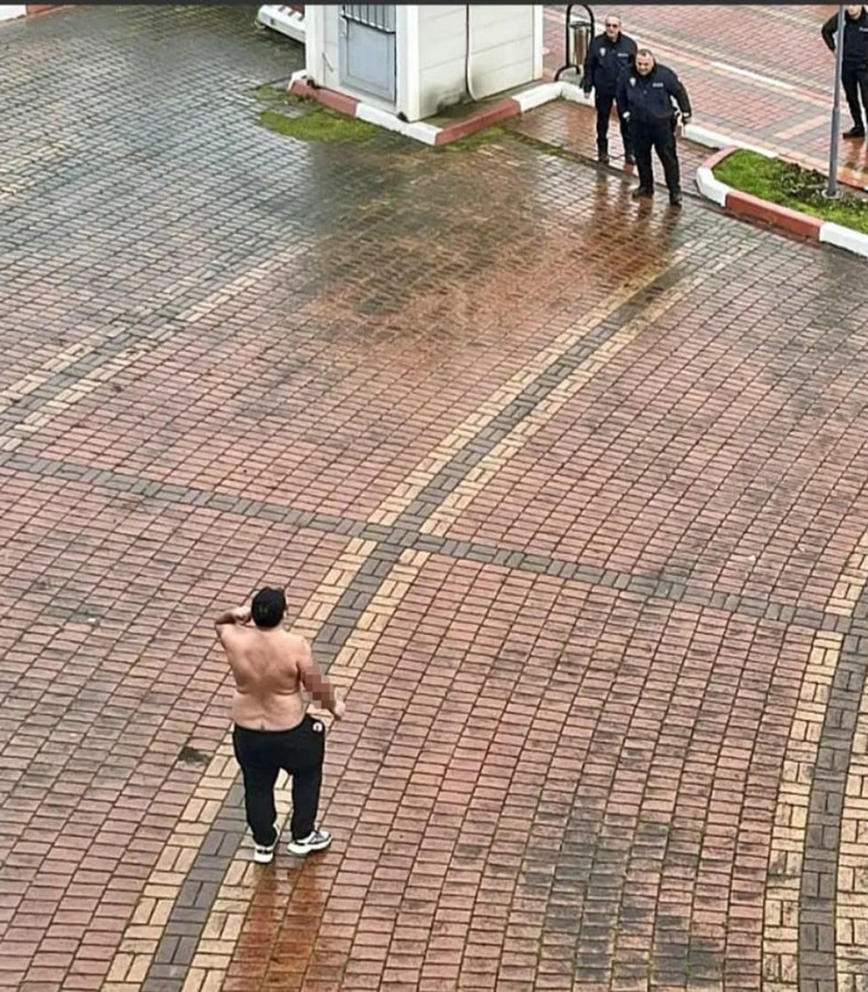 Olay yerine gönderilen polis ekipleri çevrede güvenlik tedbiri aldı. Soğuk havaya rağmen yarı çıplak halde eylem yapan şahıs, polis tarafından ikna edilmeye çalışıldı.