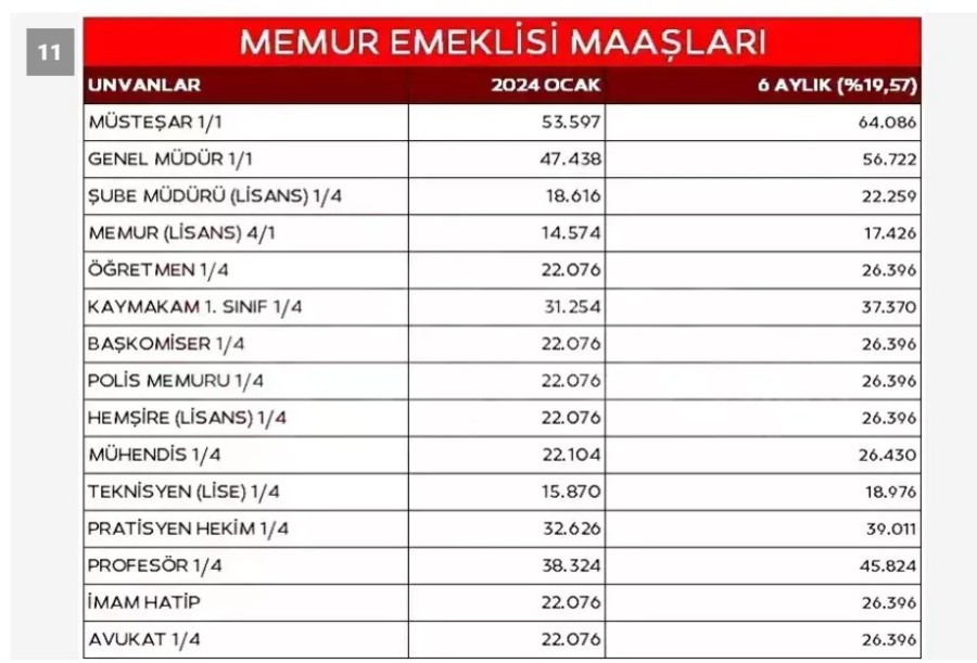 EN DÜŞÜK MEMUR VE EMEKLİ MAAŞI TABLOSU:
