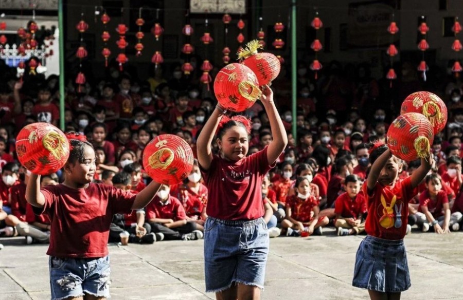 Endonezya'nın Solo kentinde Çin Yeni Yılı kutlamaları kapsamında düzenlenen etkinliklerde, Çin asıllı öğrenciler de kutlamalara katıldı. Öğrenciler, geleneksel kıyafetler ve kostümler giyerek kutlamalara katıldı.