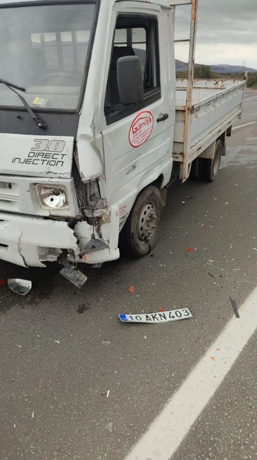 Edinilen bilgiye göre, Erdek ilçesi Tatlısu mahallesi kavşağında S.C. yönetimindeki 10 AKN 403 plakalı kamyonet ile K.İ. idaresindeki 10 ATT 30 plakalı otomobil çarpıştı.