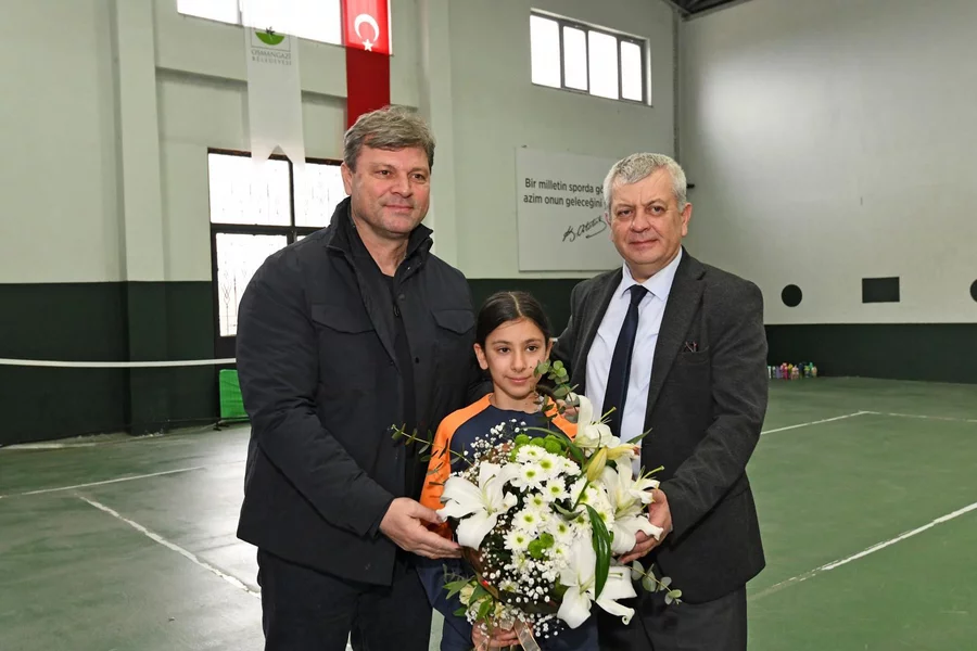 2010 yılında Bursaspor'a yaşattığı tarihi şampiyonlukla Türk futboluna adını altın harflerle yazdıran deneyimli teknik direktör Ertuğrul Sağlam, Osmangazi Belediyespor'un geleceğe umutla bakan başarılı tenisçileriyle bir araya geldi.