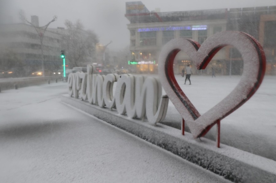 Erzincan şehir merkezine mevsimin ilk karı yoğun şekilde yağdı. Şiddetli tipi adeta hayatı felç etti.
