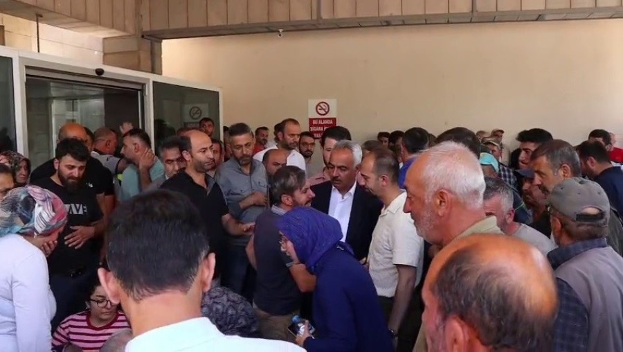 Olayın ardından Oltu Devlet Hastanesine gelen işçilerin yakınları gözyaşlarına boğuldu.