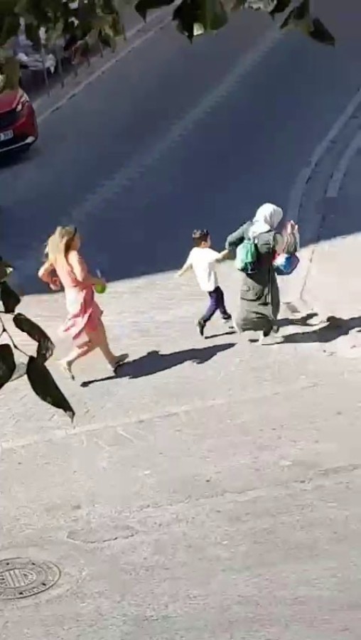 Cep telefonu kamerasına yansıyan görüntülerde bir kadın, iddiaya göre yoldan geçen başörtülü bir vatandaşın başörtüsüne saldırdığı ifade edildi.