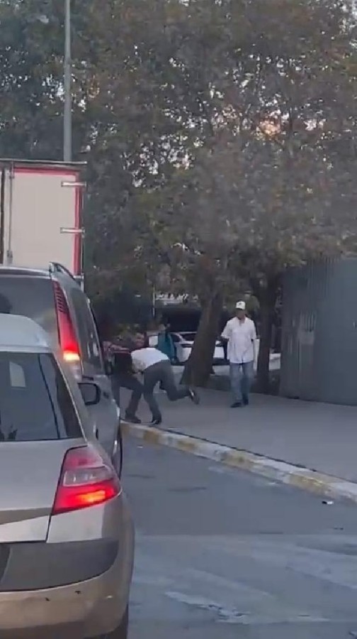 Panelvan araç sürücüsü, sola dönmek isteyen otomobil sürücüsüne yol vermedi. İki araç sürücüsü arasındaki yol verme tartışması kavgaya dönüştü. Araçlarından inen sürücüler tekme ve yumruklarla birbirlerine saldırdı.