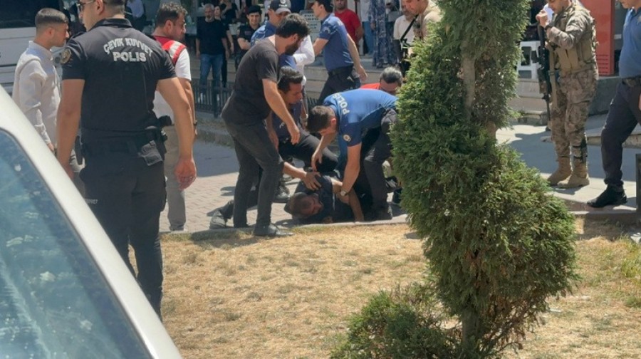 Şüphelilerin savcılıktaki işlemleri sürerken geniş güvenlik önlemi alınan adliye önünde hareketlilik yaşandı. Bir kişi, giriş kapısı önünde bağırmaya başladı. Adliye çevresinde önlem alan polis ekipleri bağıran kişiye müdahale etti. Polis, şüpheliyi gözaltına aldı.