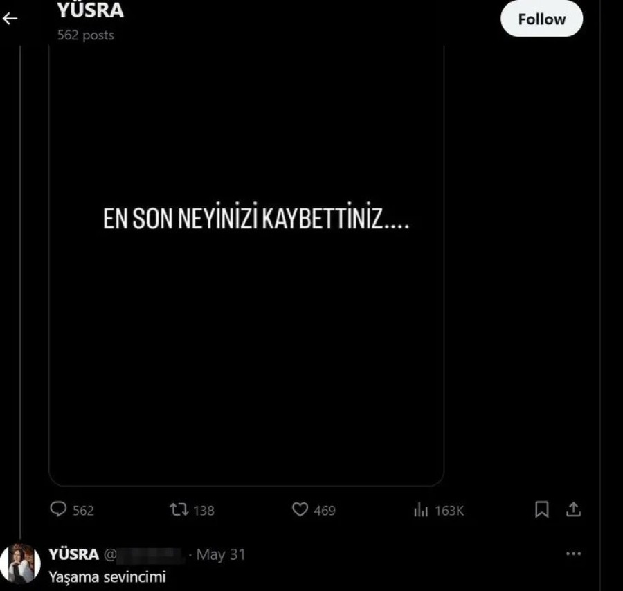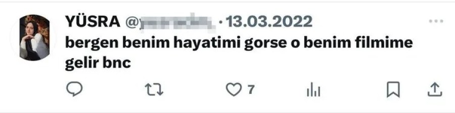 Çimtay, sosyal medya hesabından belirli tarihlerde paylaştığı gönderilerden, ''Yaşama sevincimi kaybettim", ''Allah'ım sabır ver bana", ''Kötü yaşamak korkusuyla hiç yaşamamak'', Bize ne oldu bütün insanlar hepimize soruyorum, bize ne oldu" ve "Bergen benim hayatımı görse bence o benim filmime gelir" ifadelerinin yer aldığı paylaşımlar kaldı.