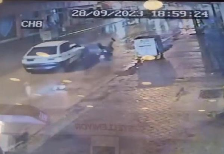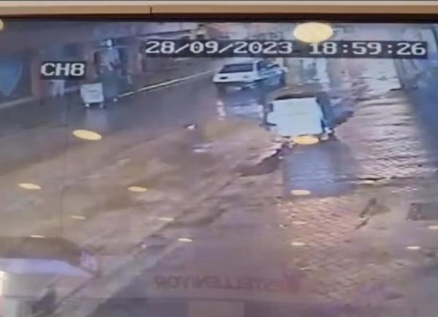Otomobilin yayaya çarparak kaçtığı kaza anı bir iş yerinin güvenlik kamerasına yansıdı.