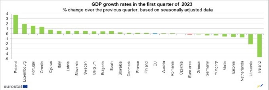 En yüksek büyüme rakamı yüzde 3,8 ile Polonya'da kaydedildi. İlk çeyrekte, Lüksemburg ekonomisi yüzde 2, Portekiz ekonomisi yüzde 1,6 büyüdü.