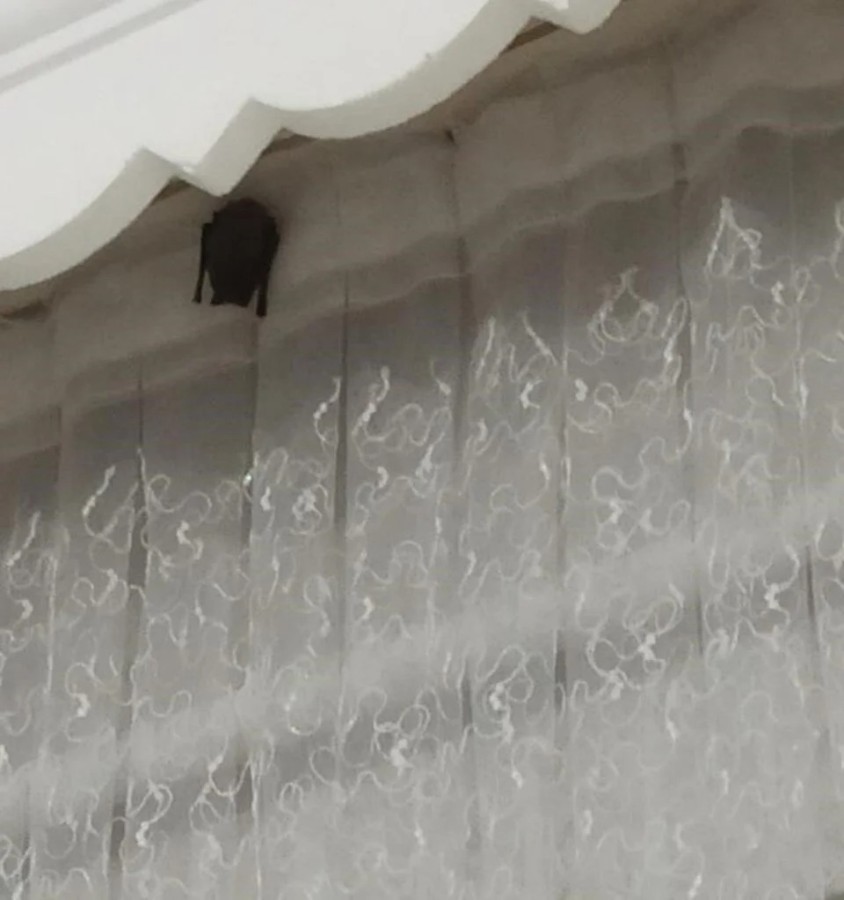 Evin lambasını yakan aile, oda içinde uçan ve perdeye konan bir yarasa ile karşılaştı.