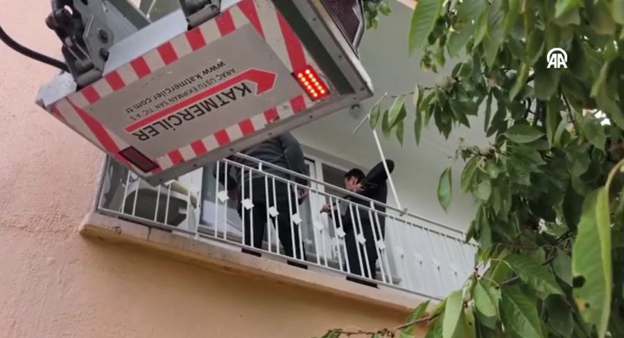 Üye'nin kapıyı açmak için gelemediğini söylemesi üzerine, itfaiye ekibi 2. kattaki dairenin penceresinden girerek yaşlı adama ulaştı.