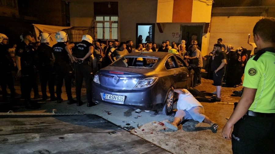Polisin, sürücü ve yanındakileri bölgeden uzaklaştırılmasının ardından yaralıların yakınları, taş ve sopalarla otomobile zarar verdi.