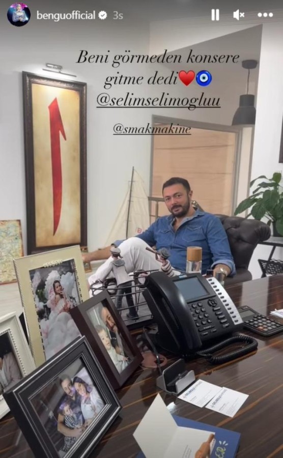 Instagram'dan eşini çektiği bir kareye yer veren şarkıcı "Beni görmeden konsere gitme dedi" notunu düştü ve fotoğrafa hem kalp hem de nazar boncuğu emojisi ekledi.