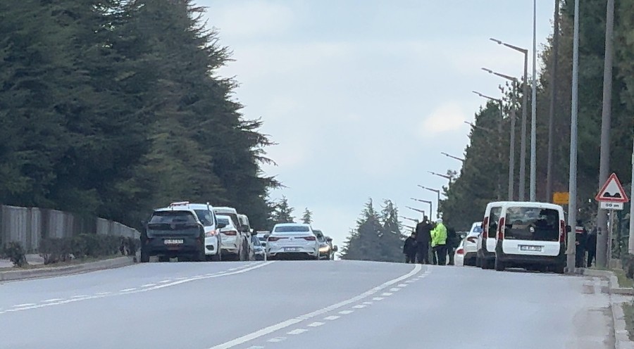 Caddeyi trafiğe kapatan ekipler, güvenlik önlemi aldı.