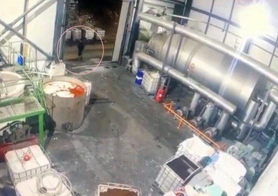 Görüntülerde, bir işçinin saniyeler öncesinde önünden geçtiği kazanın adeta bomba gibi patladığı ve alevlerin yükseldiği anlar yer aldı.