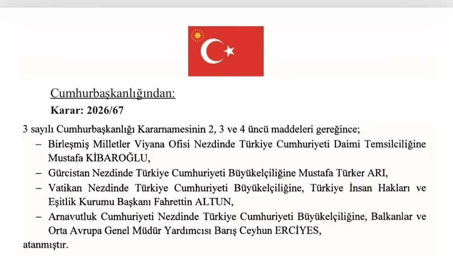 Cumhurbaşkanlığı tarafından yapılan büyükelçi atamalarına ilişkin karar Resmi Gazete'de yayımlandı.