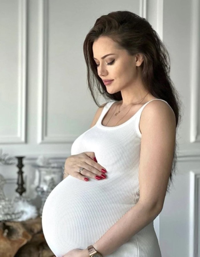 Erkek çocuk beklediğini duyuran "Kavuşmaya az kaldı" notuyla karnı burnunda pozlarını paylaştı.