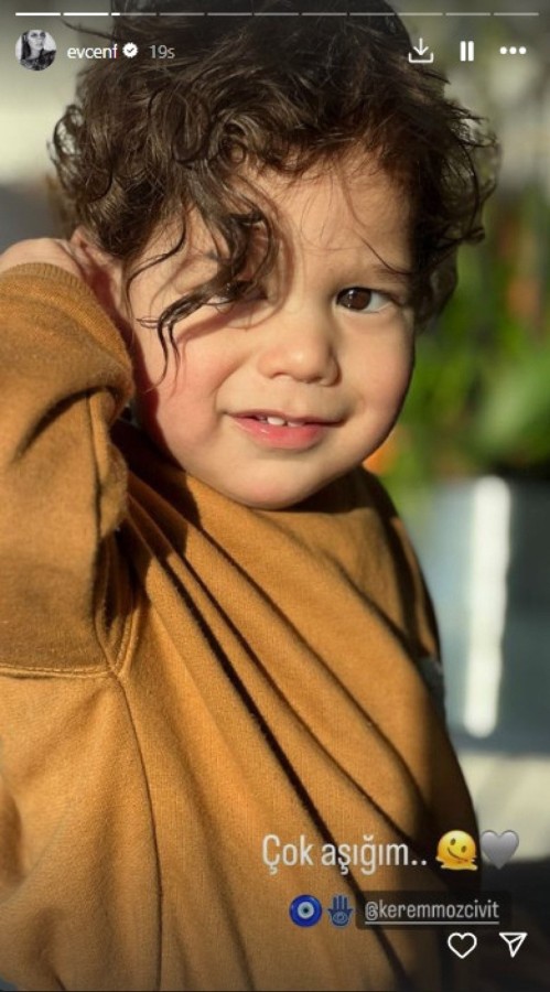 Oyuncu Fahriye Evcen küçük oğlu Kerem'i paylaştı. Evcen paylaşımına "Çok aşığım" notunu düştü.