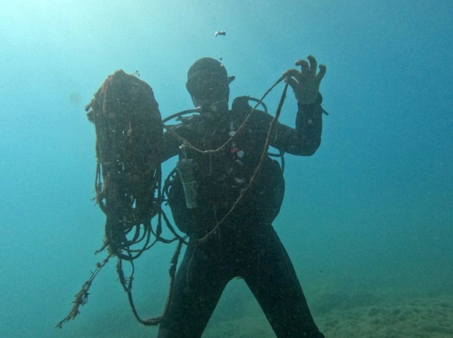 Antalya'da falezler bölgesine yaptığı dalış sırasında metrelerce uzunlukta, tonlarca ağırlığa sahip 'hayalet ağ' olarak tabir edilen balıkçı ağları ile karşılaştığını belirten dalış eğitmeni İsa Alemdar, "Yüzlerce su altı canlısı, bu ağların altında can veriyor" şeklinde konuştu.