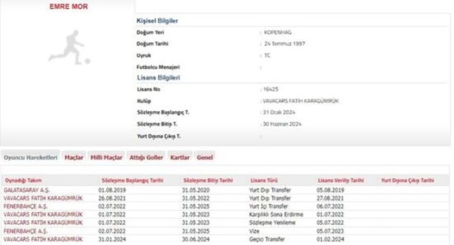 Süper Lig ekiplerinden Fatih Karagümrük, Emre Mor'u sezon sonuna kadar kiraladığını TFF'ye resmi olarak bildirdi.
