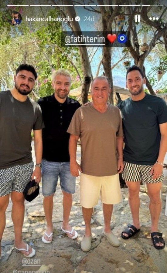 Fenerbahçeli Çağlar Söyüncü'nün düğünü için bir araya gelen milli futbolcular Hakan Çalhanoğlu, Ozan Tufan ve Caner Erkin düğünün ardından Bodrum'da Fatih Terim'i ziyaret etti.
