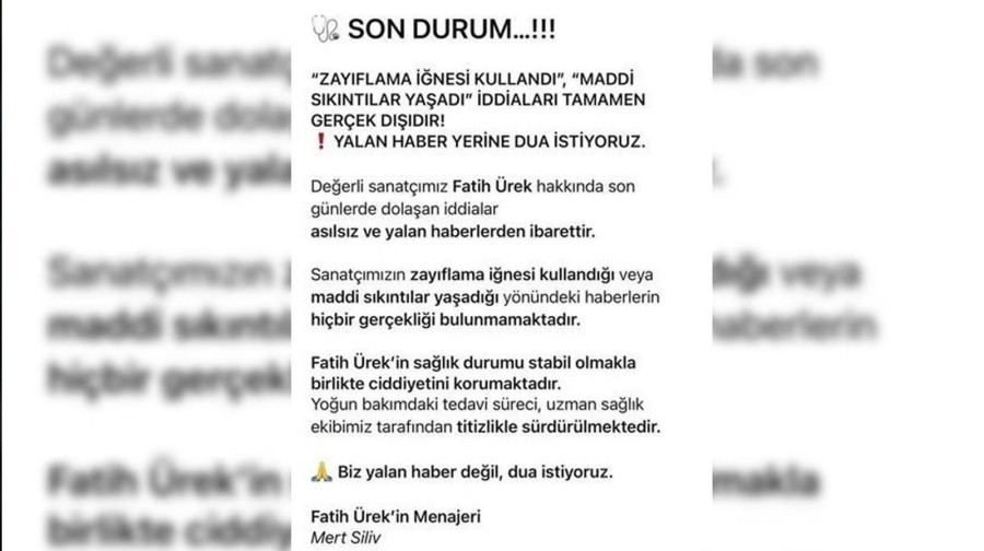 "Değerli sanatçımız Fatih Ürek hakkında son günlerde dolaşan iddialar asılsız ve yalan haberlerden ibarettir.