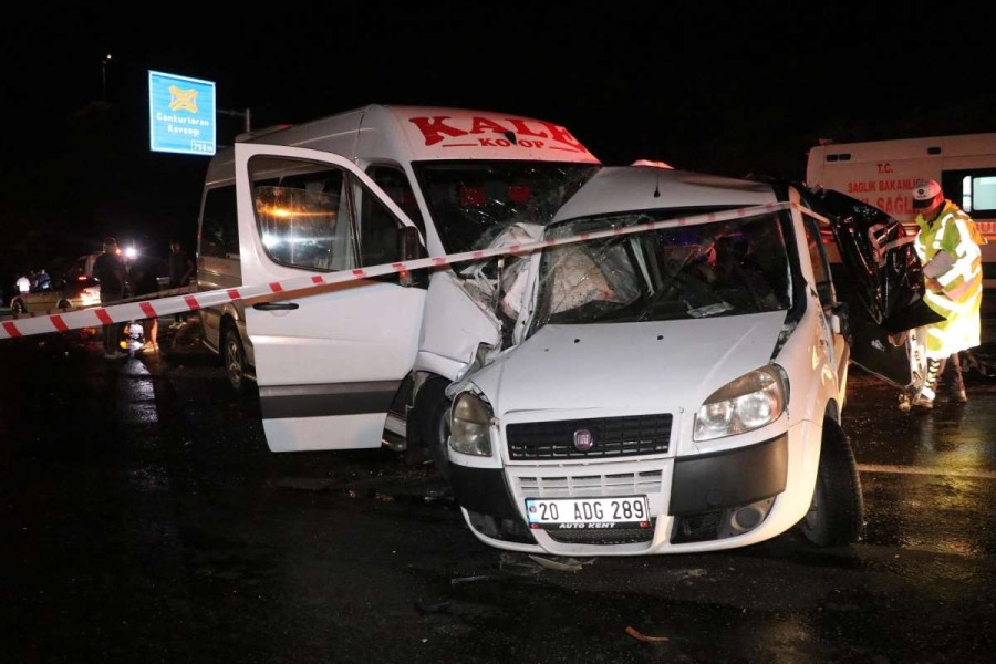 Honaz ilçesine bağlı Kocabaş Mahallesi'nde dün sabaha karşı B.A. idaresindeki 34 DZP 704 plakalı kum yüklü kamyon, refüjdeki bariyerleri aşarak karşı şeritteki İ.S'nin kullandığı 48 E 4505 plakalı otobüse çarpmıştı.