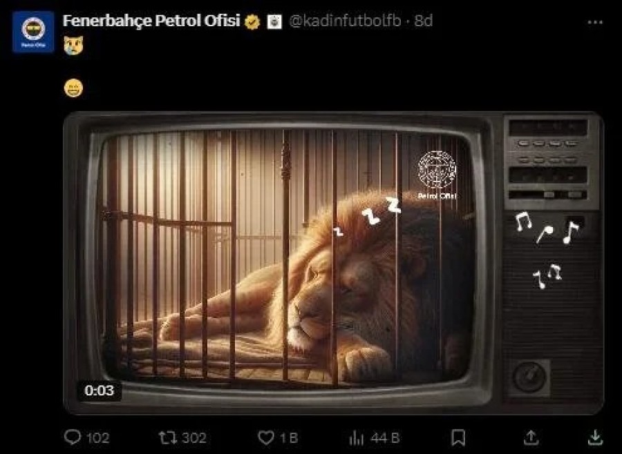 Karşılaşmanın ardından sosyal medya hesabından kafes içinde uyuyan bir aslan paylaşan sarı lacivertliler, arka planda çalan Ezel Dizi müziğiyle birlikte rakibine gönderme yaptı.