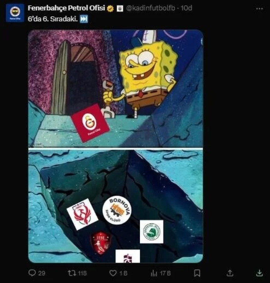 Fenerbahçe Kadın Futbol Takımı, Galatasaray'ı 2-0 mağlup etmesinin ardından ezeli rakibine göndermelerde bulundu.