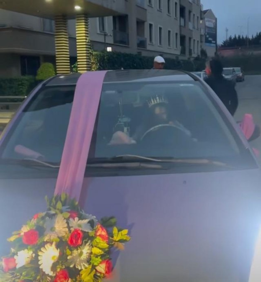 Kübra Aykut gelin arabasını hem kendisi süsledi hem de kendisi kullandı. Gelin arabasının arkasına da "Kızlar üzülmeyin. Damat yok." yazdırdı.